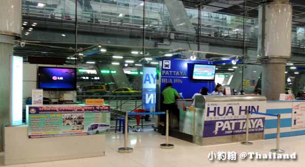 曼谷國際機場(蘇凡納布機場)1樓走過7號出口後,在8號出口附近會看到BELL TRAVEL的小服務牌子,若事先有訂票就是在這報到。在曼谷國際機場也有其他買票搭巴士去華欣和芭達雅的櫃台。文章:曼谷國際機場到Pattaya芭達雅、Hua Hin華欣、Phuket普吉島、清邁等地