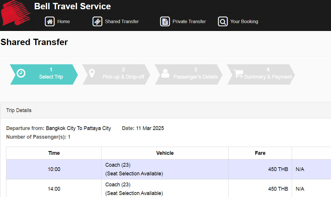 單程370泰銖,曼谷出發有三個時段,早上9點半,下午1點半,5點半,實際上到飯店接你的時間要視系統上顯示為主,我選過是8點半到曼谷飯店接送,陸續接客人後可能換車前往,視人數而定。