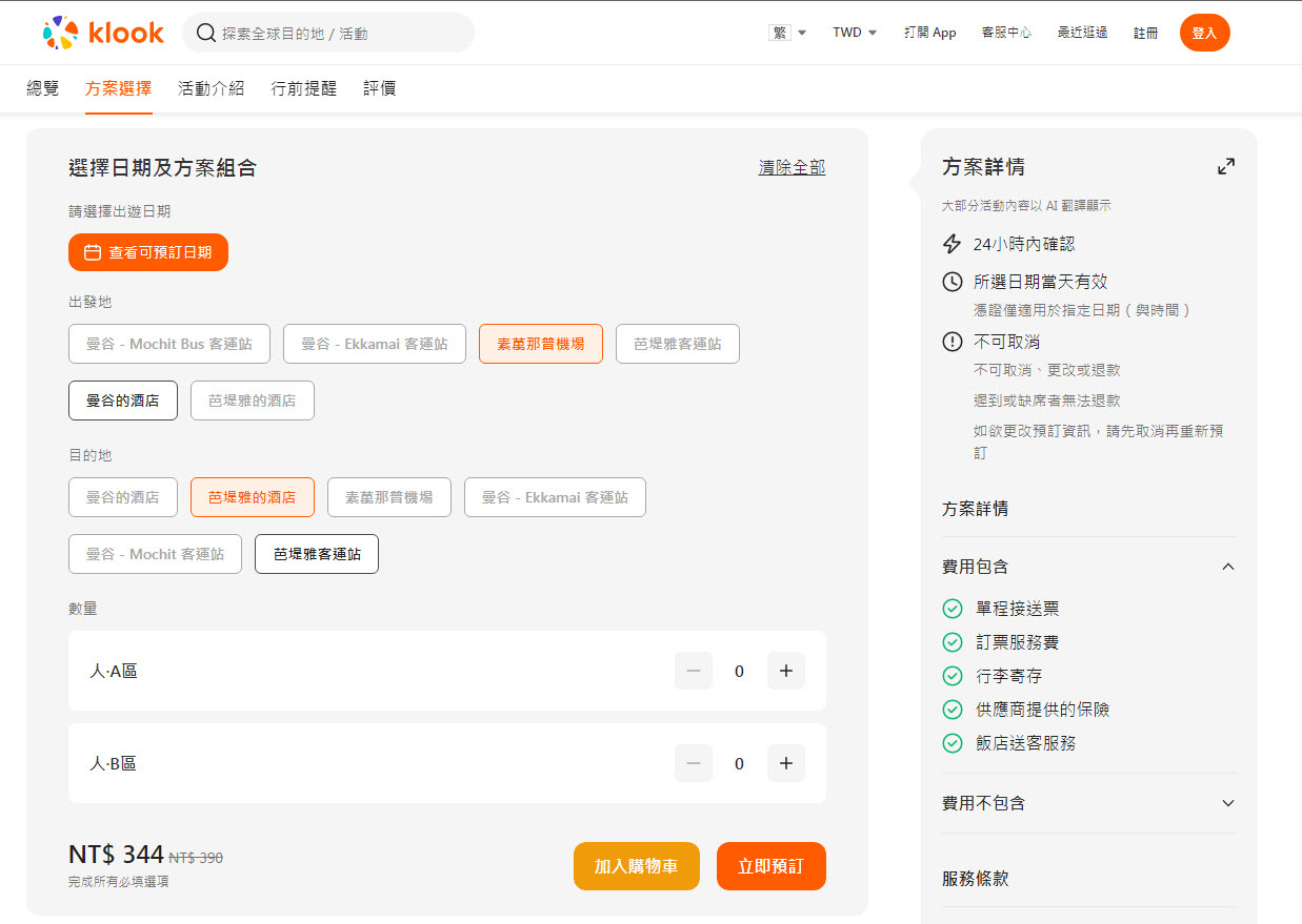 Klook可以訂芭達雅交通車,一樣有飯店送飯店的選項。