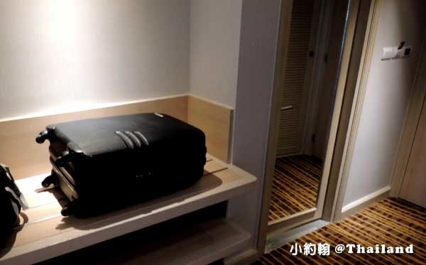 我的Amari Watergate房間!這個角度看房間,就不會看到行李箱和鞋子。衣櫃旁又有一片大鏡子,方便整理儀容,Amari Watergate應該是我住過飯店裡「鏡子」最密集的了!哈)))