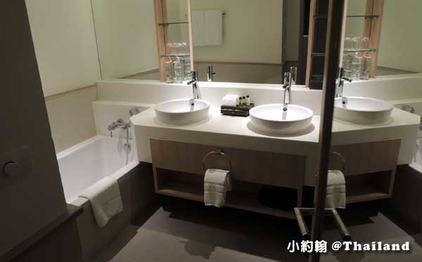 Amari房間浴室不算大,但實用性高,兩個洗手槽、浴缸、淋浴間、馬桶間。