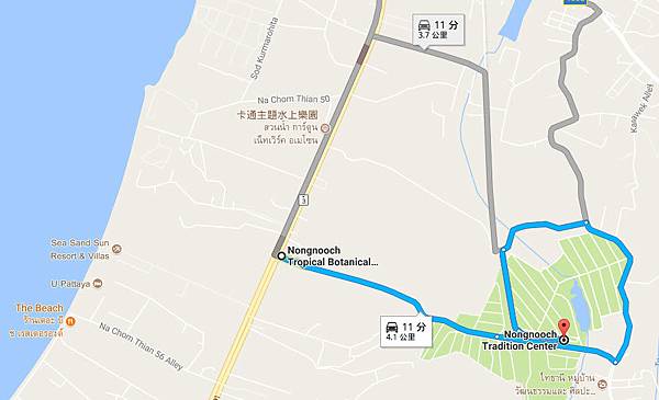 Nongnooch Tropical Botanical Garden行駛入口:Google Map 地圖