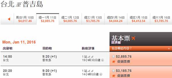 捷星航空Jetstar 來回普吉島Phuket機票約7千2千元起,此為不加購任何東西。