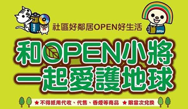 和OPEN小將一起愛護地球活動,兌換商品可能會有變動。