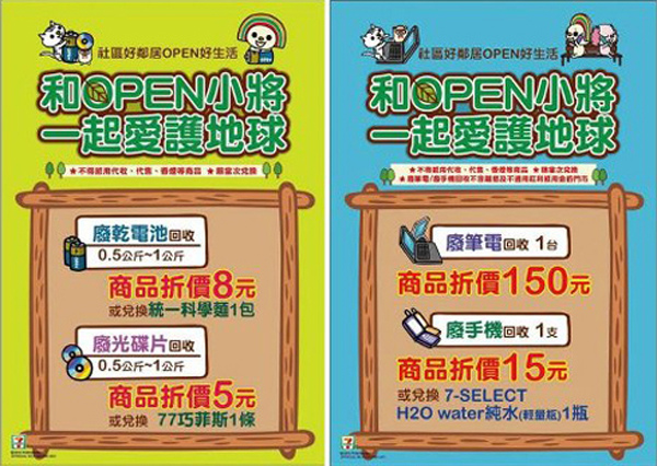 7-ELEVEN超商:廢電池 廢光碟回收換點心網頁