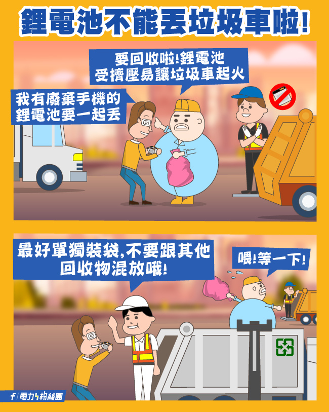 台電宣導:鋰電池不能丟垃圾車啦!