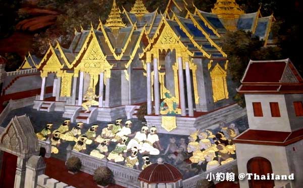 在大皇宮的壁畫作品可以看到Ramakien拉瑪堅神話故事的彩色畫作。