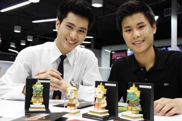 上圖左邊ECO Design推出的是大象系列,一份129泰銖。中間則是由年輕設計師Tharit Ketprapakorn所設計的拉瑪堅神話(Ramakien)可愛摺紙公仔。