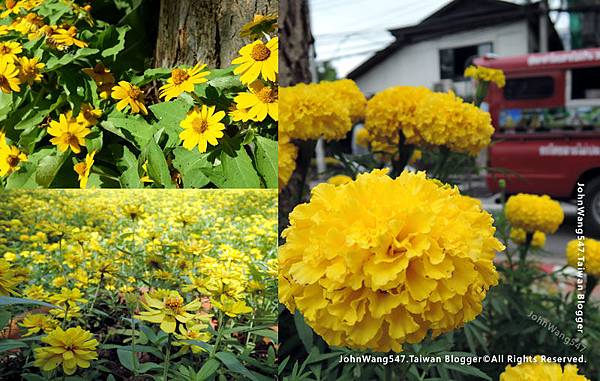 泰皇蒲美蓬(Bhumibol Adulyadej)的生日代表色:黃色,所以政府機關、企業、泰國人都種了許多黃花,特別是今年10月,用來紀念泰皇蒲美蓬。