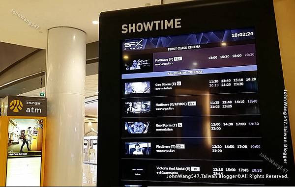 泰國國喪期間電影院的螢幕顯示預告片和電子看板也是黑白色的~