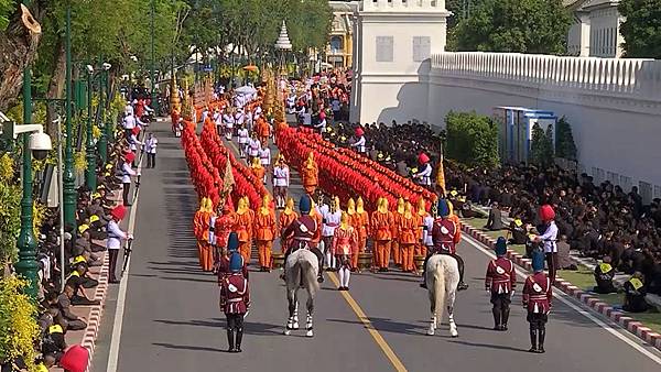 我大多時間都在房間裡觀看這泰國盛大典禮,泰壯觀,動員超多人,現場民眾也多。除了泰國皇家田大皇宮,泰國各地的運動場或是大公園、展覽場、佛寺廣場都有同步追思活動,方便全國各地泰國人民可以聚在一起緬懷先王。