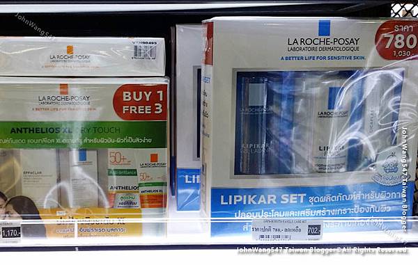 一般來說泰國買日本與歐美品牌沒有台灣便宜,不過有些泰國限定商品可以注意看看,上圖:理膚寶水La Roche-Posay套裝組合有比較划算嗎?