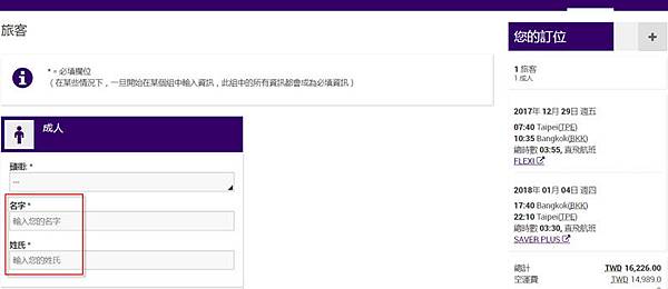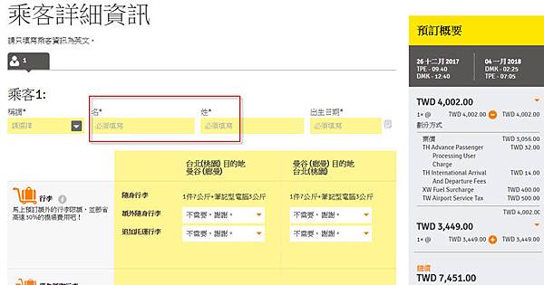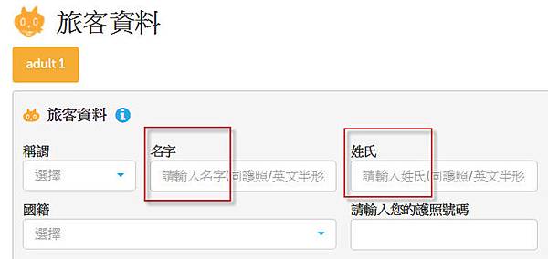 大家在訂機票時,真的要看清楚「姓」、「名」欄位,依照「護照」上的英文填寫。