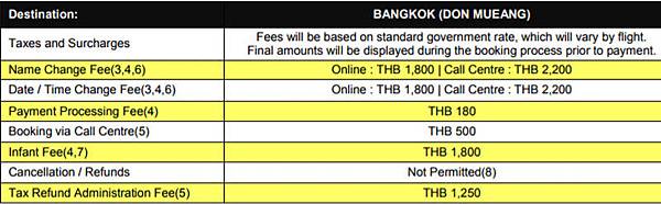 引用來源:酷鳥航空NokScoot-聯絡我們,NokScoot Fee Chart: For THAILAND Origin