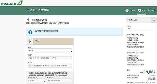 長榮航空(Eva air)的旅客訂位資料欄設計的很好,有加上範本,填寫時更容易懂。