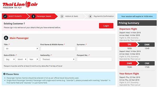 Thai Lion Air泰國獅子航空(獅航)促銷票出發前4小時改期需收750泰銖以及票差,此促銷無發改名或改更改航點。