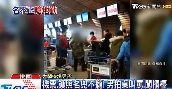2018年3月台灣新聞,乘客因機票與護照姓名不同,因此不能Check in,以致男子拍桌叫罵闖櫃檯。