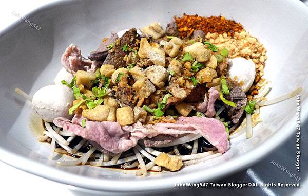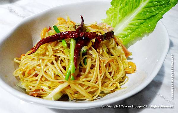 用中式雞蛋麵(chinese egg noodle)炒蝦仁乾、火腿,再以威士忌和辣油調味。Mee-Sua Noodle,160泰銖