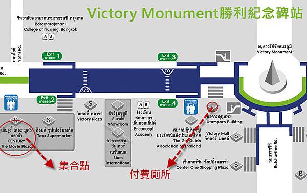 在BTS捷運Victory Monument勝利紀念碑站2號出口的Century電影商場正門口集合。