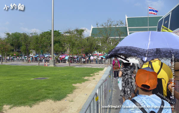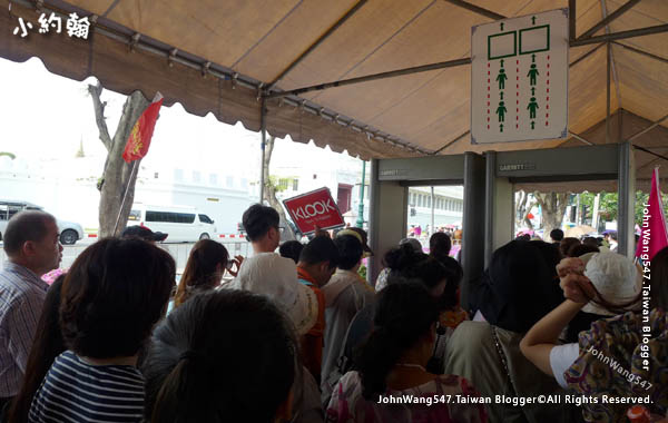 快到曼谷大皇宮前還有設置「安檢門」,遊客分兩路前進。