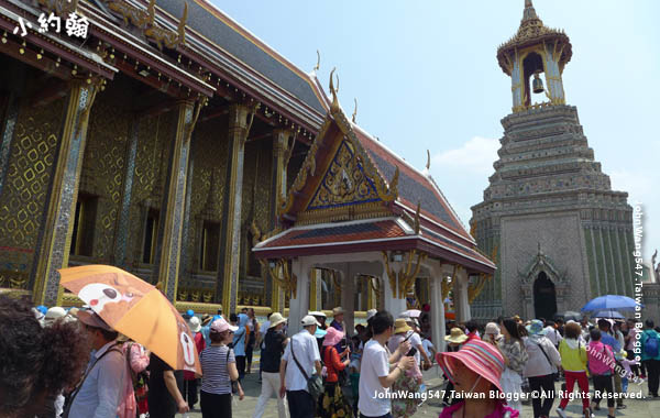 驗票進入曼谷大皇宮的玉佛寺區,導遊先集合大家做景點介紹,然後約好時間與集合位置。不過還是有人沒有準時回來,遲到太久,大家先繼續行程,導遊後面又去找人,最後大家又齊聚了。真的走散了,大不了就先到出口等嘍!