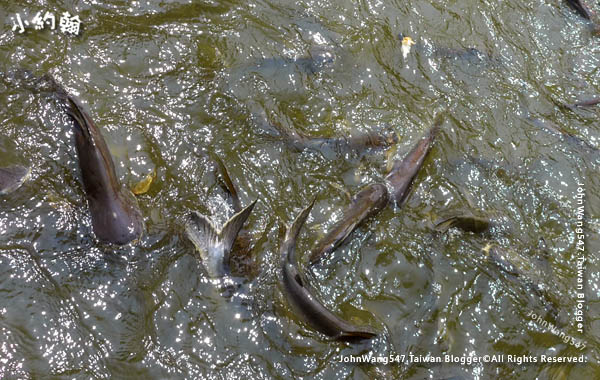 在河畔佛寺外停了下來,發給每個人一條麵包餵餵河中魚兒,看看這些肥美大魚「乳海翻騰 」。餵魚後船隻來個大回轉,準備到下一個景點「卧佛寺」的碼頭。