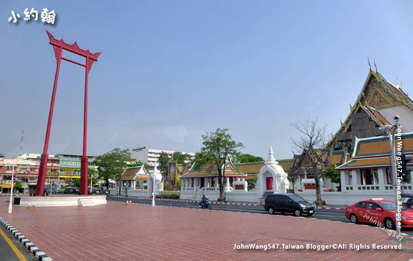 離開臥佛寺,回大巴士上吹冷氣,大家已經熱昏了累了。路上大巴士會經過「曼谷大鞦韆(Giant Swing)」,旁邊是蘇泰寺(Wat Suthat),沒有人想停下來拍照,就在車上窗戶看看,哈)))