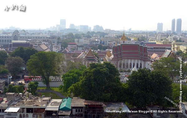 在金山寺(Wat Saket)頂樓天台上可以俯看曼谷舊城區的城市景觀。