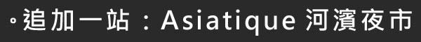 雖然曼谷大皇宮一日遊,行程景點算起來不多,但白天日曬步行逛景點泰熱了,好佳在是每個景點間都有坐下來休息的時間。傍晚說真的很想先回飯店洗澡,但可以搭車吹冷氣到Asiatique河濱夜市,省得另外搭捷運換接駁船的時間,所以還是繼續往Asiatique前進啦!這樣一天的行程就滿滿的!哈)))