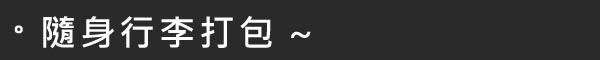 相關文章:[出國旅遊行李整理篇]旅行收納,實用小物,酒精等液體物品隨身行李登機注意事項,個人託運行李列表參考~