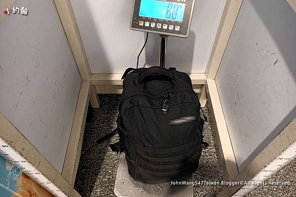 在桃園機場裡秤重,近8.8公斤,其實已經超過可以隨身登機的重量。好佳在獅航一直以來沒遇過秤隨身行李的習慣,不是每家航空、每次都不會秤喔!有些廉航會在乘客背包上加上航空公司識別條,這時可能會秤重量。不過若線上預辦登機,可能就不會遇到這個問題啦!不過亞航在某些國家航線上,會在登機口再次秤重。