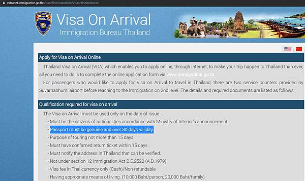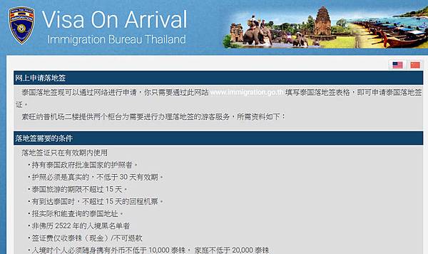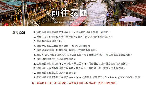 上圖:引用自泰國觀光局官網-落地簽說明網頁