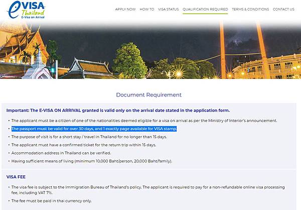 再來看看泰國區相關網站有關泰國落地簽文件的說明~