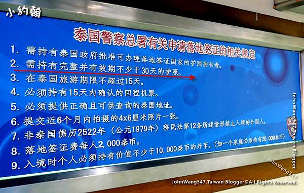 小結:台灣區泰國觀光局和泰辦處官網顯示要6個月,但泰國曼谷機兩個機場現場公告的都是一個月,泰國移民局官網也是顯示一個月。整理到這裡,你相信哪個?選你想相信的,對自己的決定負責嘍!哈)))