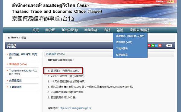 上圖:駐台北泰國貿易經濟辦事處-泰國落地簽證所需準備資料