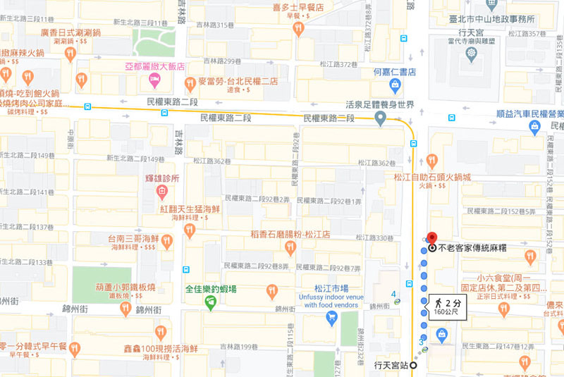 不老麻糬位在捷運行天宮站3號出口向右往台北行天宮方向上,總能看到排隊人潮。
