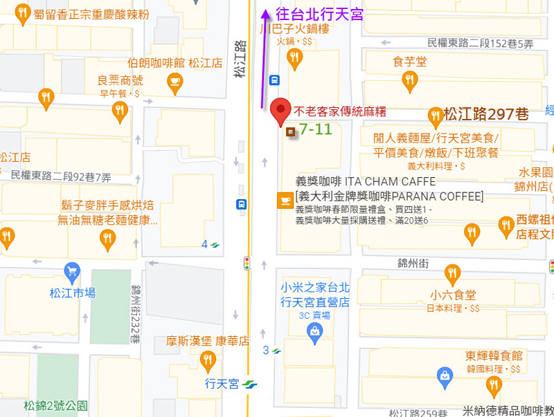 位在捷運行天宮站3號出口向右往台北行天宮方向上,在7-11超商旁的巷口,總能看到排隊人潮。