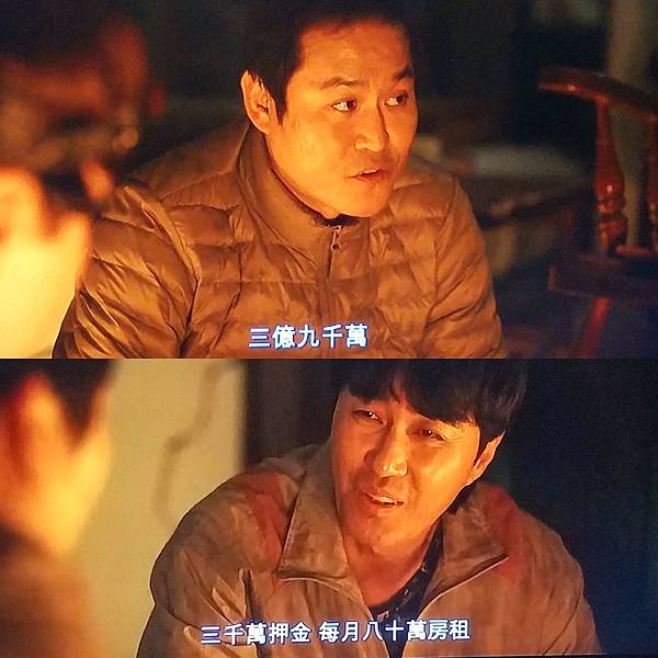 同棟住戶鄭萬壽(車勝元 飾演)則是租房,租房押金韓幣3千萬,約台幣71萬多,每月韓元80萬房租,約台幣1萬9千元。