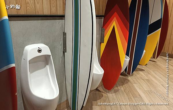 色彩繽紛,沖浪板成了小便斗隔間板!