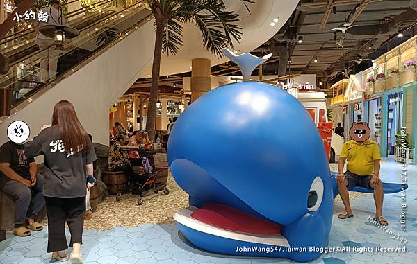 LG樓Caribbean Village 加勒比村莊在手扶梯旁有海盜船造景,還吊起一尾大白鯊。
