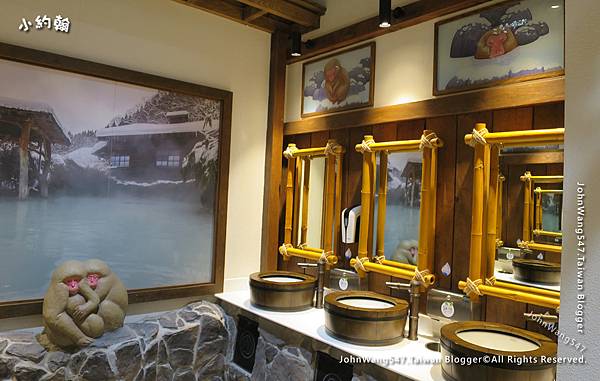 日本村的洗手間以「地獄谷野猿公苑」為概念,有許多日本野生獼猴造景。