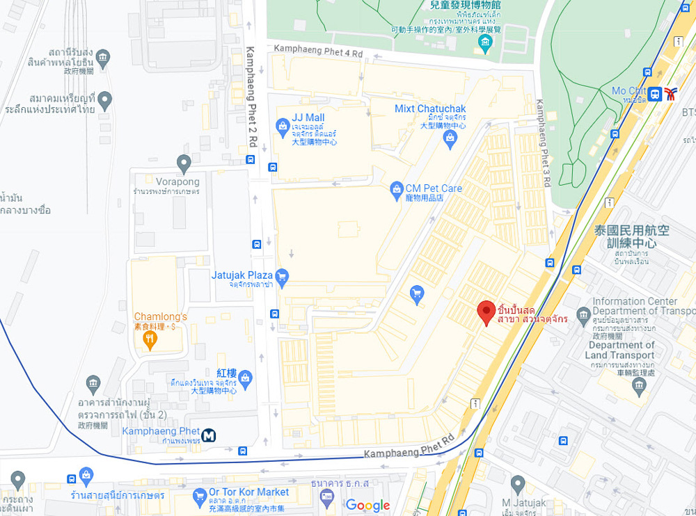 搭BTS捷運到Mo Chit蒙奇站1號出口,繞行札都甲公園外圍的人行步道。