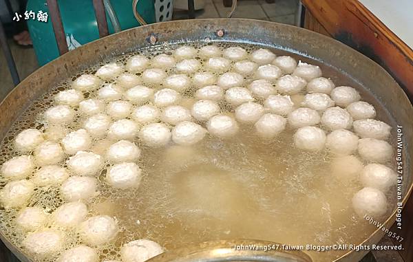 現場壓出豬肉丸,先燙一次煮熟,再放到另一個鍋內,由櫃台結帳人員夾起包裝給客人。