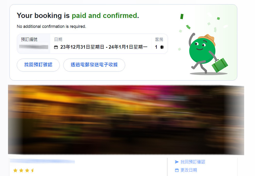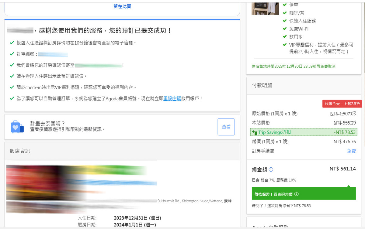 感謝您使用Agoda預訂... Hotel(入住期間:2023年12月31日)。