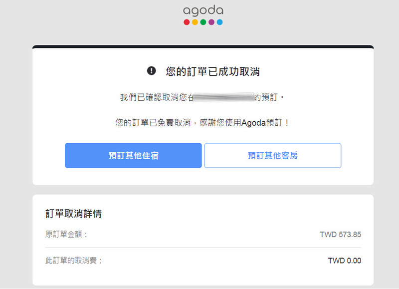 於是我只好先取消訂單!以免這張訂單懸在那,也造成飯店方的問題。