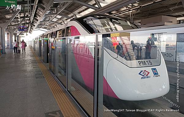 一般來說遊客會住在曼谷BTS捷運線上居多,我是使用BTS捷運一日無限搭車卡,順便來搭粉紅線,在BTS捷運N17.Wat Phra Sri Mahathat站換粉紅線,雖然是不同的捷運地鐵系統,卻不用出站就能換車,不過BTS單次卡或一日卡,後續要到出站前的服務台補票,拿到另一張票卡出站。粉紅線是獨立銷售單程票的。