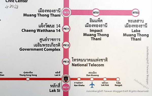 。PK14.Lak Si站交換SRT紅線,可往廊曼機場或曼谷邦蘇中央車站(Bang Sue Grand Station)
