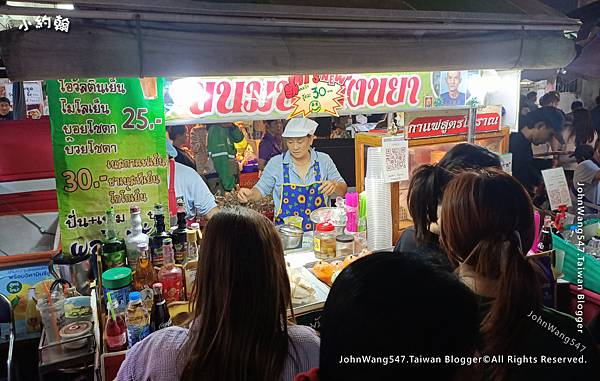 晚上人潮真的蠻多的,攤販不算特別多,集中在個巷子人行道上,想知道哪些是熱門小吃飲料難,跟著排隊人龍走。逛膩了曼谷市中心熱門的觀光夜市的遊客,月初有時間可以來這走走,泰在地!