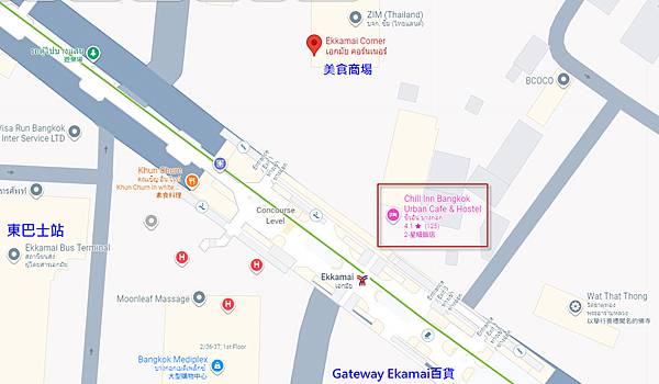 Chill Inn Bangkok Urban Cafe & Hostel在捷運Ekkamai站1號與3號出口之間,附近有Gateway百貨、Ekkamai Corner美食商場,曼谷東巴士站就在鈄對面。