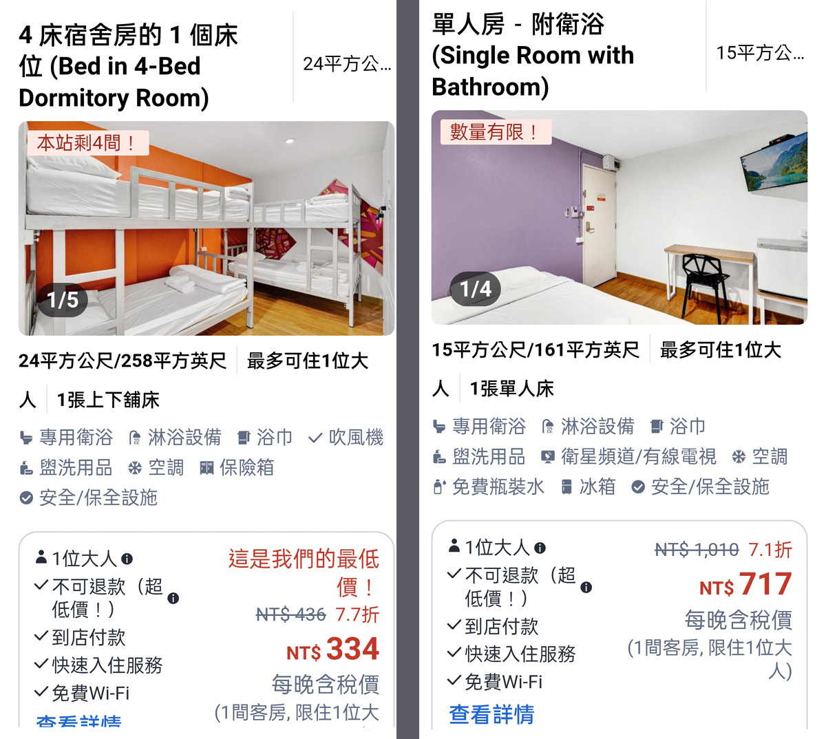 有的親友旅遊可能會想訂4人房同住,不過在訂房網一次訂4間,不一定保證四人會同房喔!這還是要看空房的情況,畢竟每個房客退房時間不同。或是寫信詢問。